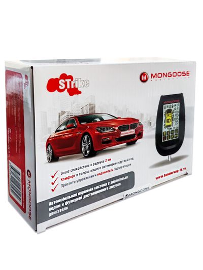 Автомобильная охранная система с обратной связью и автозапуском оснащена диалоговым кодом, что обеспечивает максимальную защиту от считывания и угона. Сигнализация оснащена автоматическим турботаймером и интеллектуальным управлением замками дверей в режиме двухшагового отпирания, что предотвращает несанкционированное проникновение в салон автомобиля при кратковременных остановках. Кроме того, оперативное включение функции Anti Hi-jack от открытия двери на одну поездку, не входя в программирование функций, обеспечивает дополнительную противоугонную защиту. Автосигнализация Mongoose STRIKE оснащена современными датчиками, которые реагируют на любые изменения вокруг автомобиля и передают импульс на сирену, запуская сигнал тревоги и оповещая владельца, путем передачи соответствующего уведомления на брелок с жидкокристаллическим экраном.