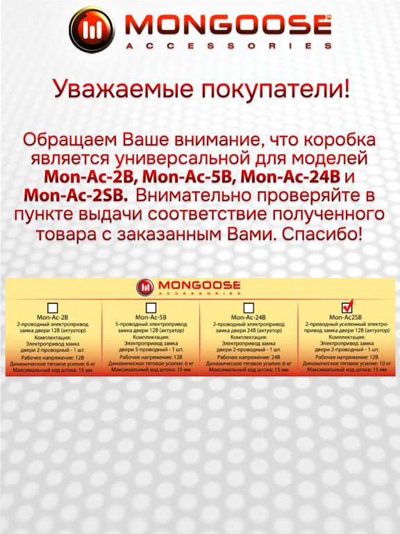 Усиленный привод электрический 2-проводный Mongoose Mon-Ac-2SB 12V(12В)